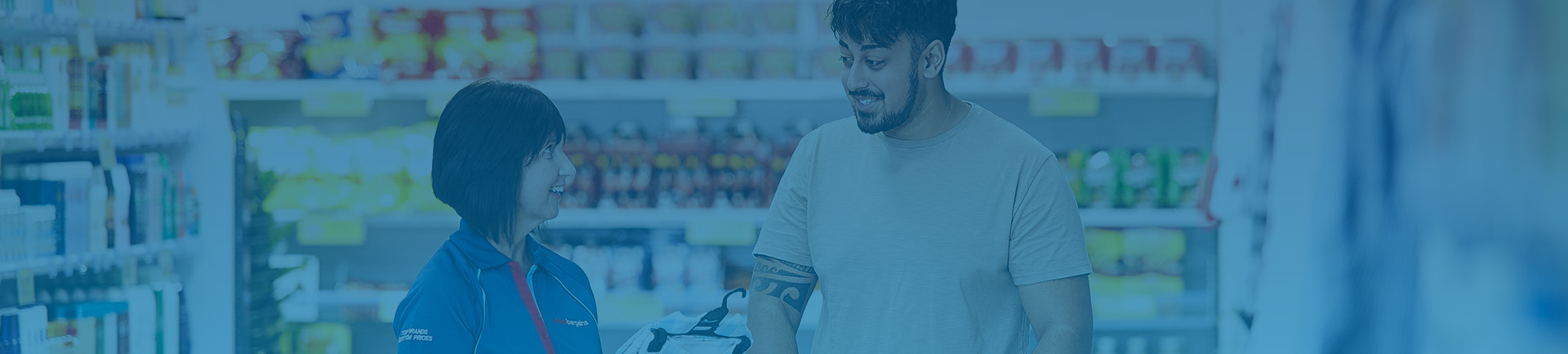 Smiling Home Bargains employee serving woman at a till